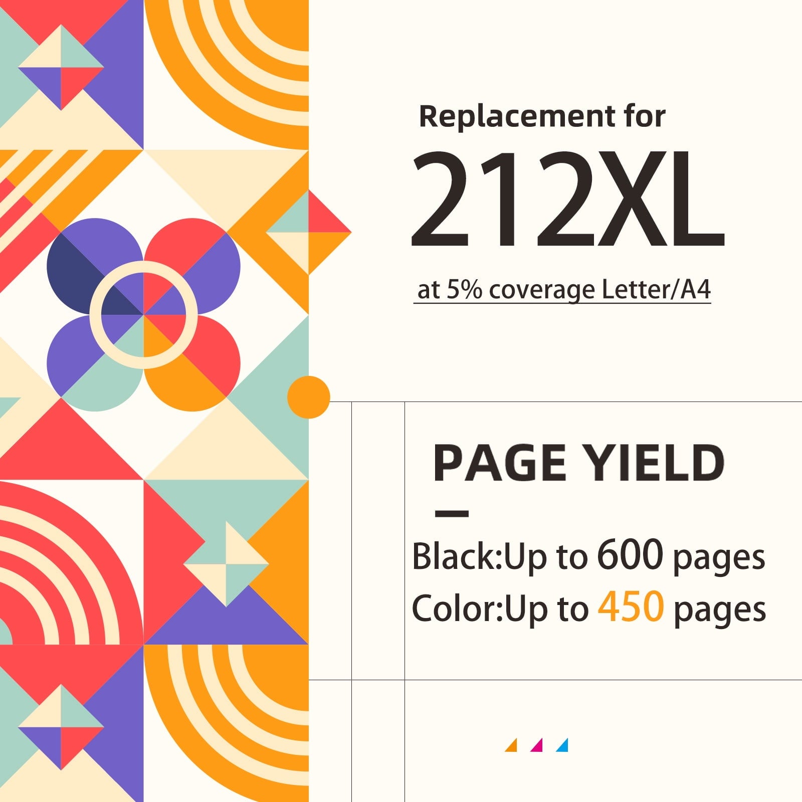 450 pages per 212XL color ink cartridge (at 5% coverage on A4 letter)